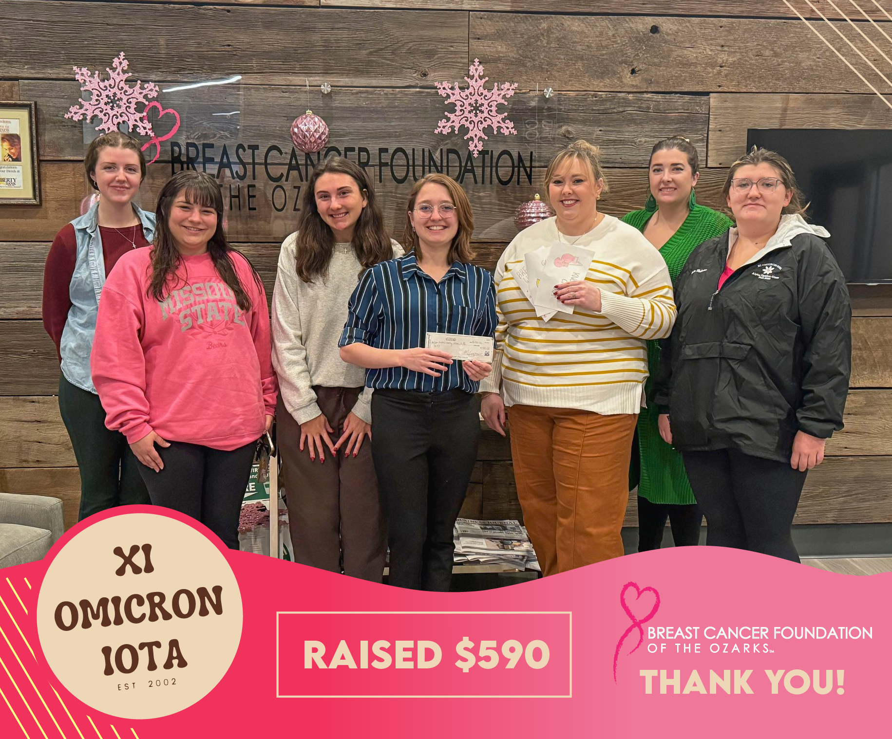 The Xi Omicron Iota sorority has adopted BCFO as their philanthropy project. This amazing group raises funds all year long and each year makes a significant gift at the Xi Om Philanthropy Banquet. The sorority hears an annual message from BCFO staff on risk factors and signs and symptoms of breast cancer to help reduce their risk of the disease.